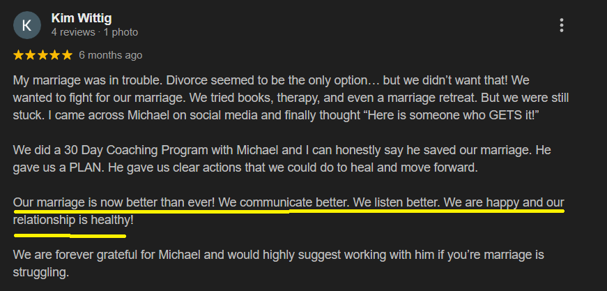 Instead, you’ll have the confidence and desire to build the marriage you deserve.